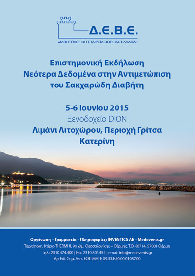 Η Διαβητολογική Εταιρεία Βορείου Ελλάδος διοργανώνει στην Κατερίνη στις 5-6 Ιουνίου 2015 Επιστημονική Εκδήλωση με θέμα: Νεότερα δεδομένα στην αντιμετώπιση του Σακχαρώδη Διαβήτη, στο ξενοδοχείο DION, στην περιοχή Γρίτσα, στο Λιμάνι Λιτοχώρου.