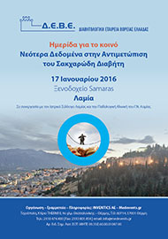 Η Διαβητολογική Εταιρεία Βορείου Ελλάδος διοργανώνει στη Λαμία την Κυριακή 17 Ιανουαρίου 2016 Ημερίδα για το κοινό με θέμα: Νεότερα δεδομένα στην αντιμετώπιση του Σακχαρώδη Διαβήτη, στο ξενοδοχείο SAMARAS.