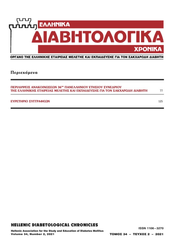 Περιλήψεις ανακοινώσεων 36ου Πανελληνίου Ετήσιου Συνεδρίου της Ελληνικής Εταιρείας Μελέτης και Εκπαίδευσης για τον Σακχαρώδη Διαβήτη | 2021 | 34 | 2 | 75-124 | ΠΕΡΙΛΗΨΕΙΣ ΣΥΝΕΔΡΙΟΥ | Άρθρο | ||